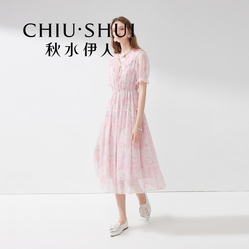 SEENFAAN盛放法式 不对称下摆设计感气质裙子 浪漫风纯欲连衣裙修身