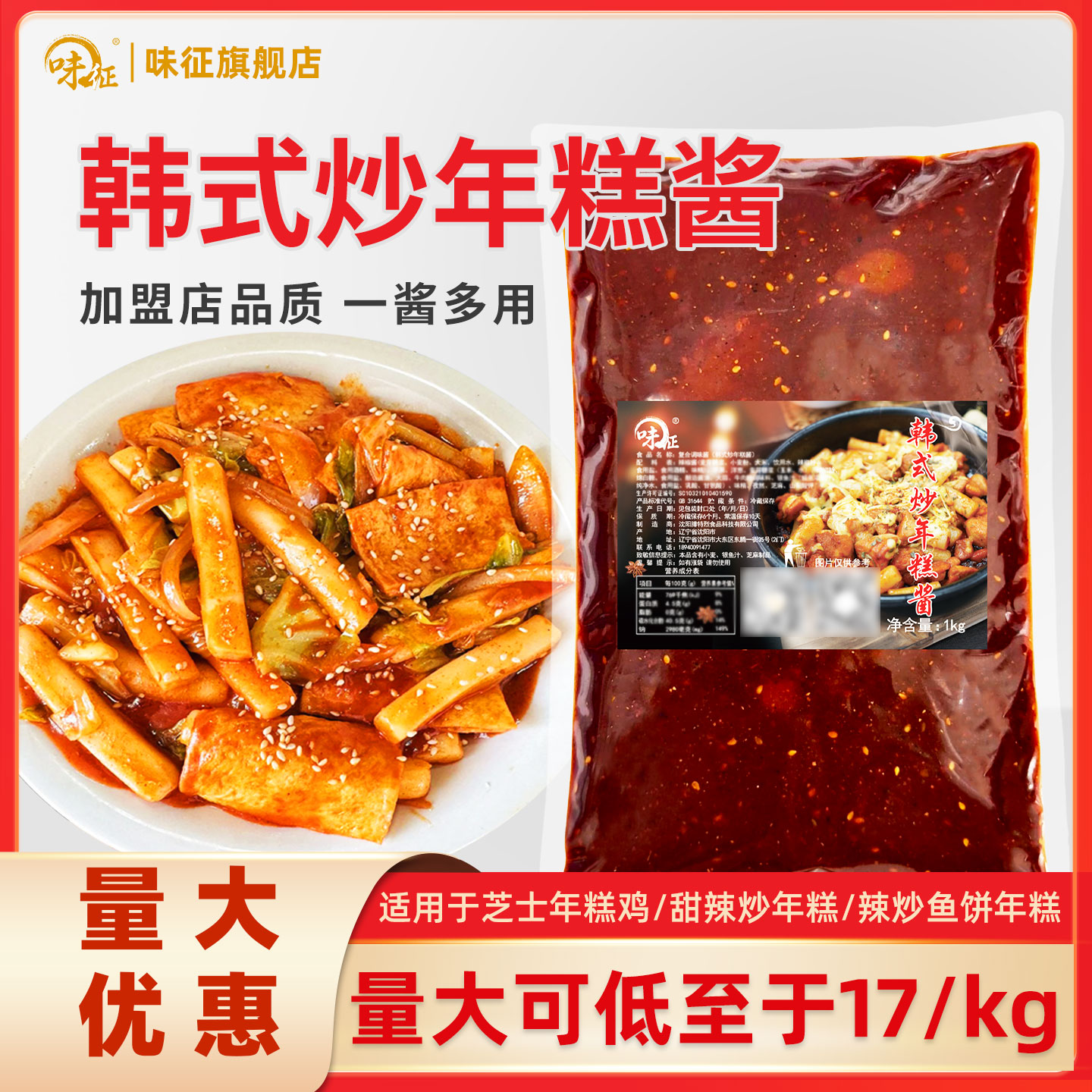 配料餐饮装 辣炒年糕酱商用韩式 辣椒酱炒鱼饼调味料朝鲜小木屋同款