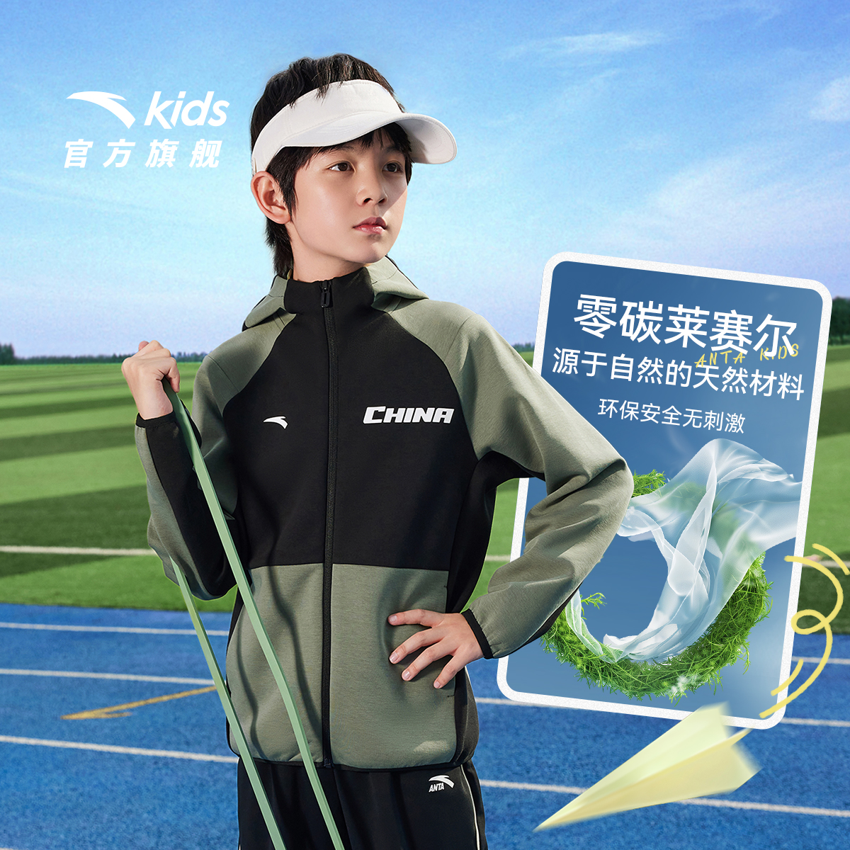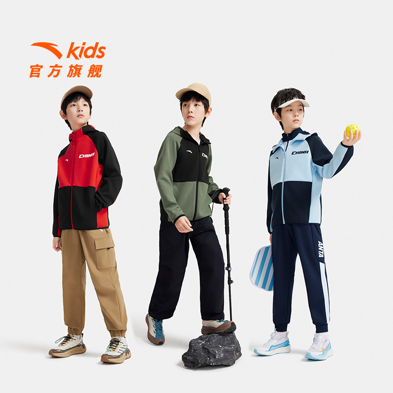 安踏儿童男童户外针织运动上衣衣2025秋季 防风保暖连帽薄外套 新款