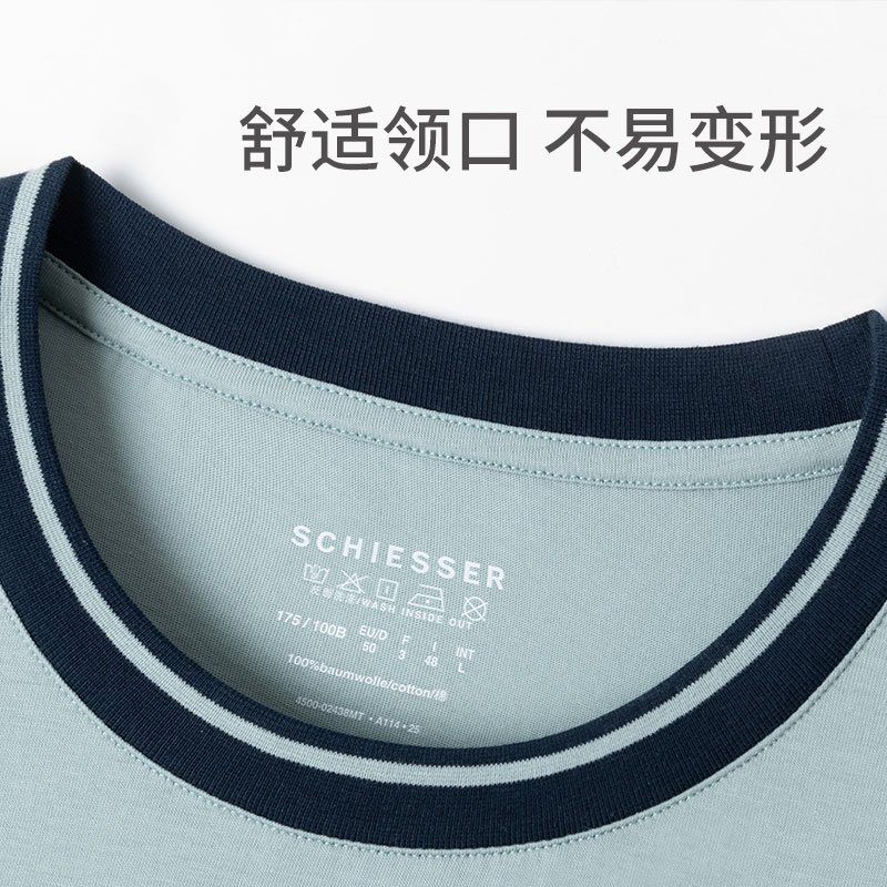简约全棉高级感可外穿圆领家居服套装 春秋款 睡衣男士 猫人纯棉长袖