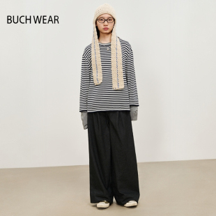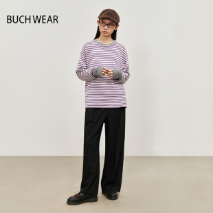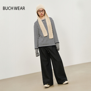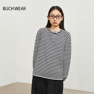 时尚 BUCH 新款 T恤女2025夏季 宽松条纹气质流行上衣326421 WEAR