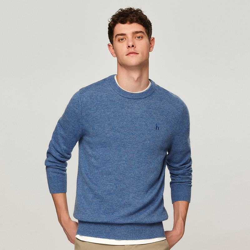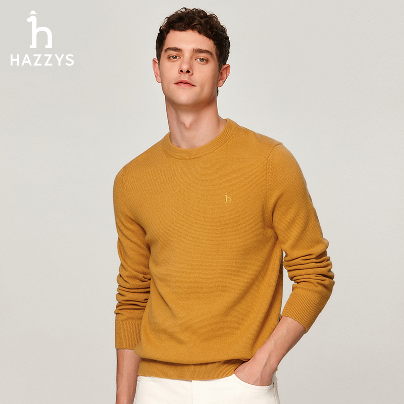 针织衫 Hazzys哈吉斯秋冬季 休闲长袖 羊毛衫 男保暖纯色毛衣潮流 男士
