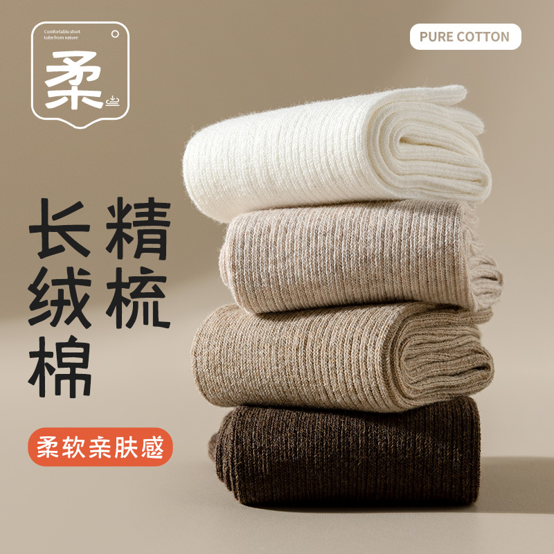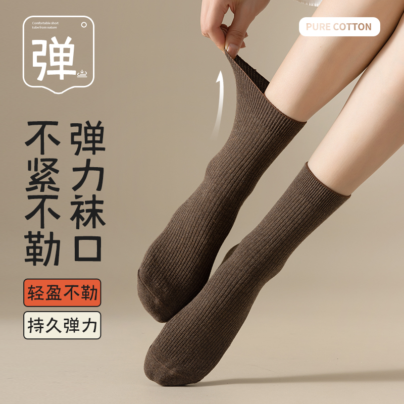 棉伙棉伴海藻袜舒适抗菌防臭男女商务运动纯色裸感中筒袜