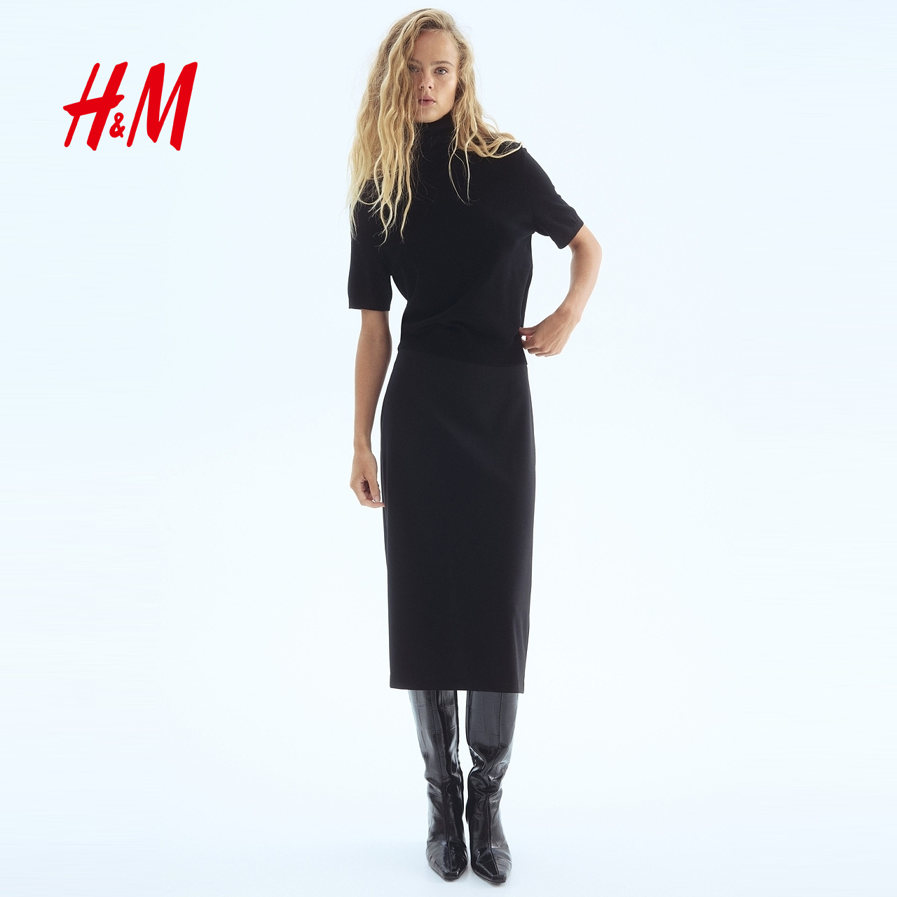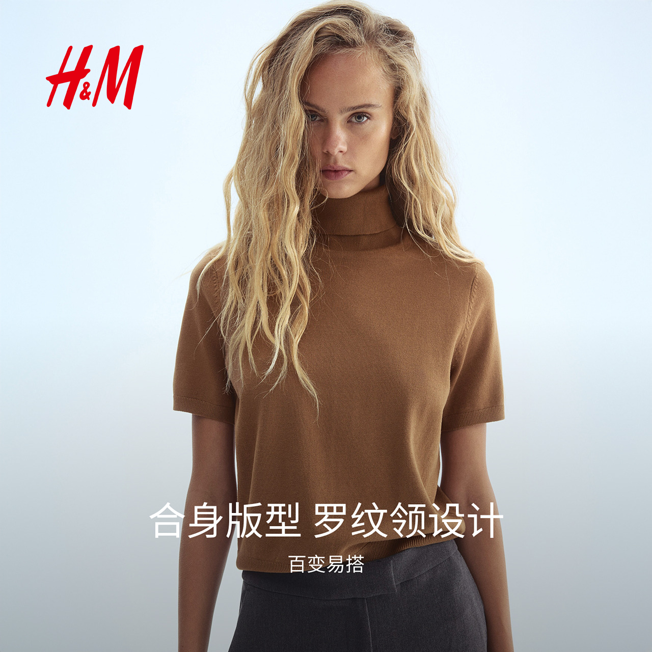 慵懒风细密圆高领内搭短袖 2025秋新款 上衣1293965 毛针织衫 HM女装