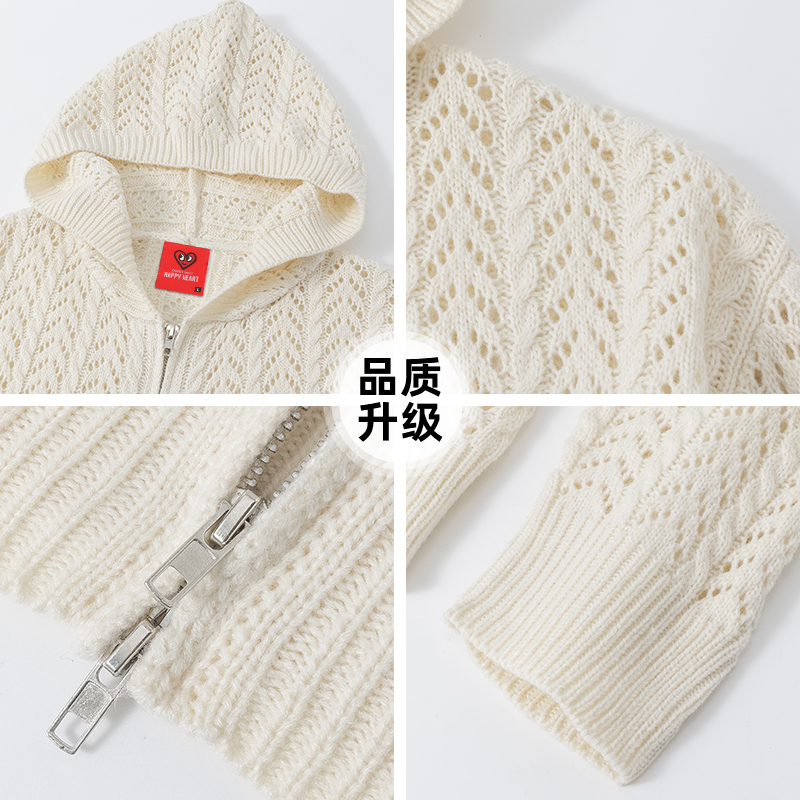 休闲复古感翻领针织衫 热风女士针织衫 新款 毛衣2025年秋季 拉链开衫