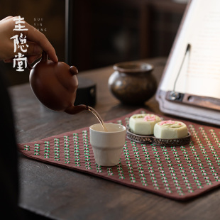 圭隐堂小碎花手作刺绣织锦干泡茶席中式 国风家用茶桌隔热布垫茶垫