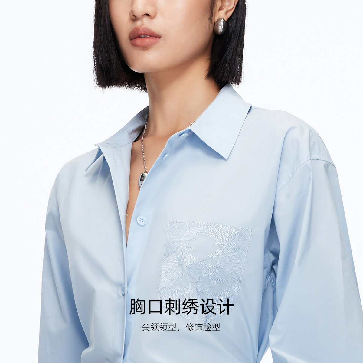 新款 飞鸟和新酒印花修身 女2025冬季 衬衫 纯棉印花上衣 灯芯绒长袖