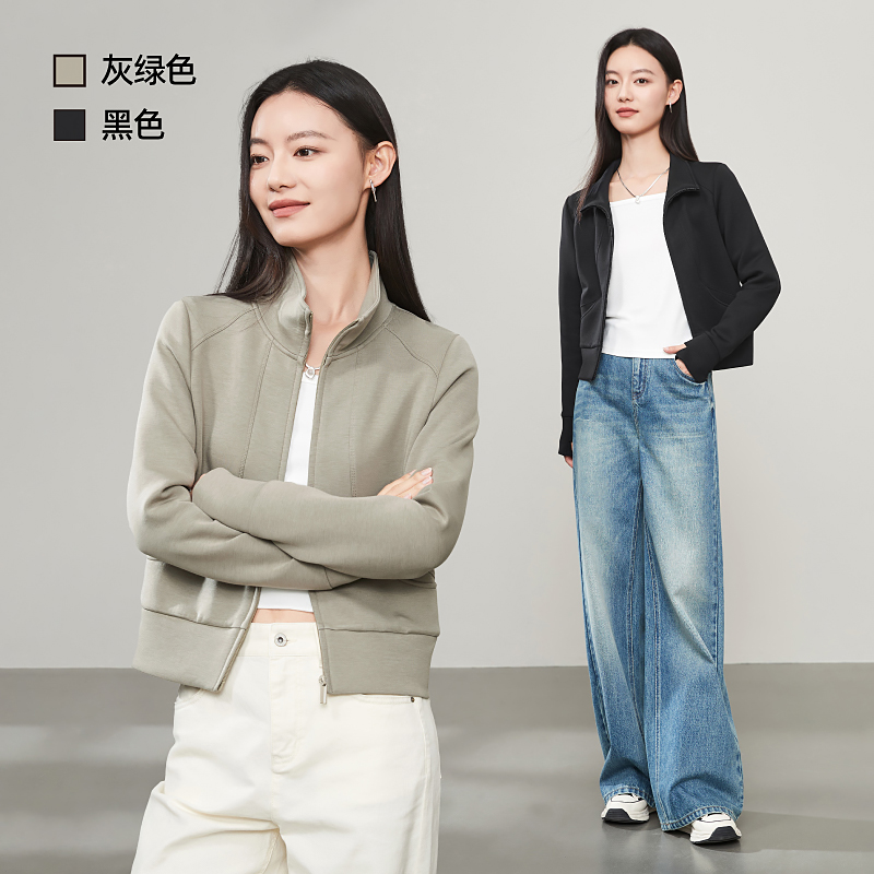 逸阳灰绿色立领卫衣外套女2025秋季 绵羊毛不易起球保暖外套 新款