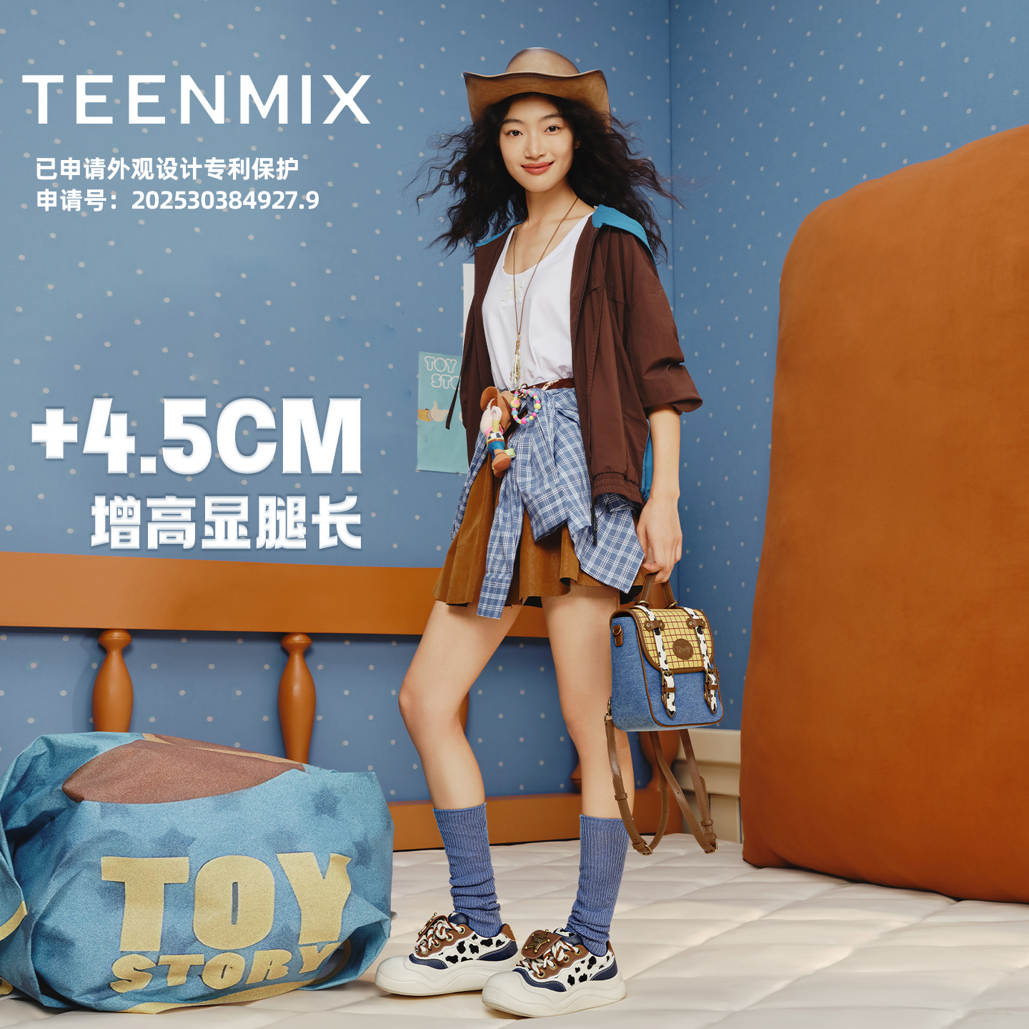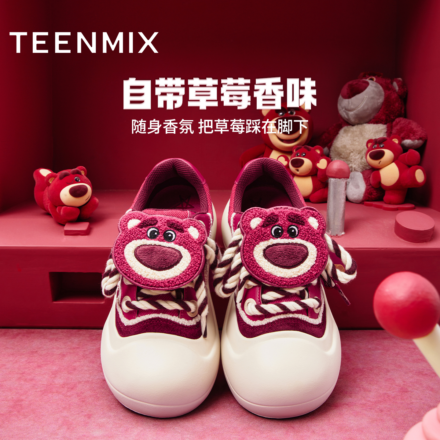 女秋板鞋 天美意玩具总动员草莓熊玩具团子厚底大头鞋 双11预售