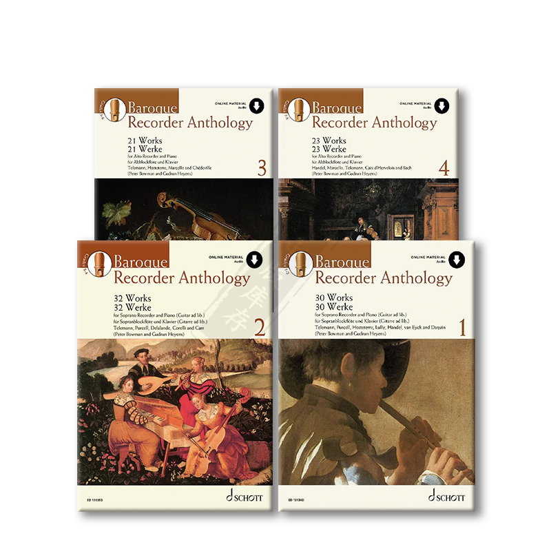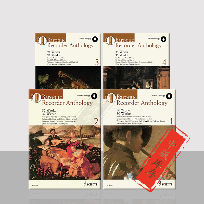 Vol 全套共四卷 Baroque Recorder 乐谱书 附在线音频 朔特原版 巴洛克时期记录作品 Anthology 竖笛和钢琴