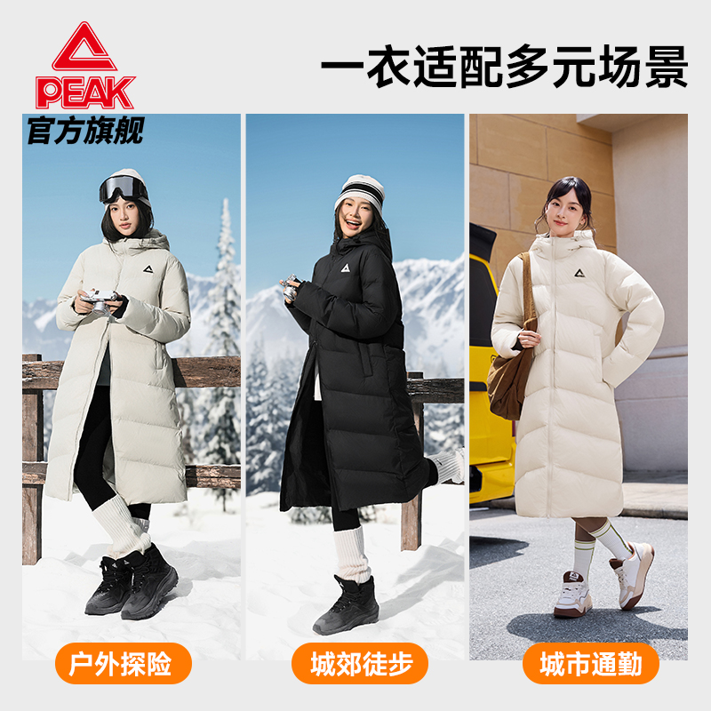 女连帽鸭绒保暖加厚官方正品 户外冬新款 外套 羽绒服 匹克驭雪长款