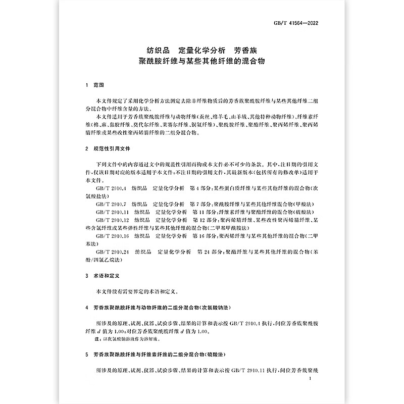 芳香族聚酰胺纤维与某些其他纤维 41564 定量化学分析 混合物 2022纺织品