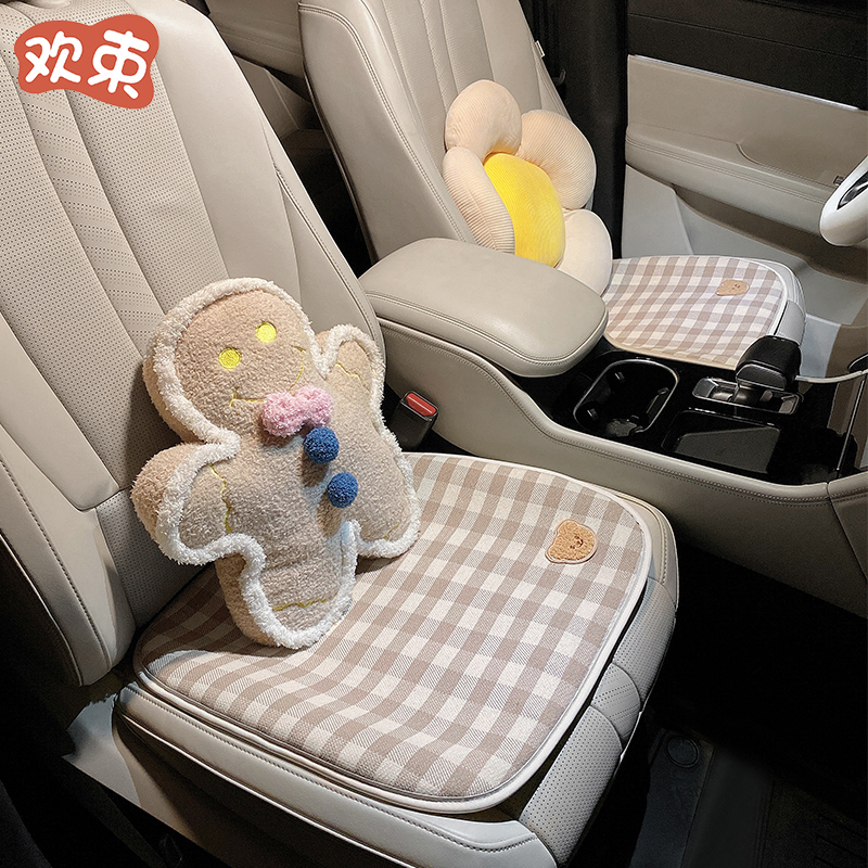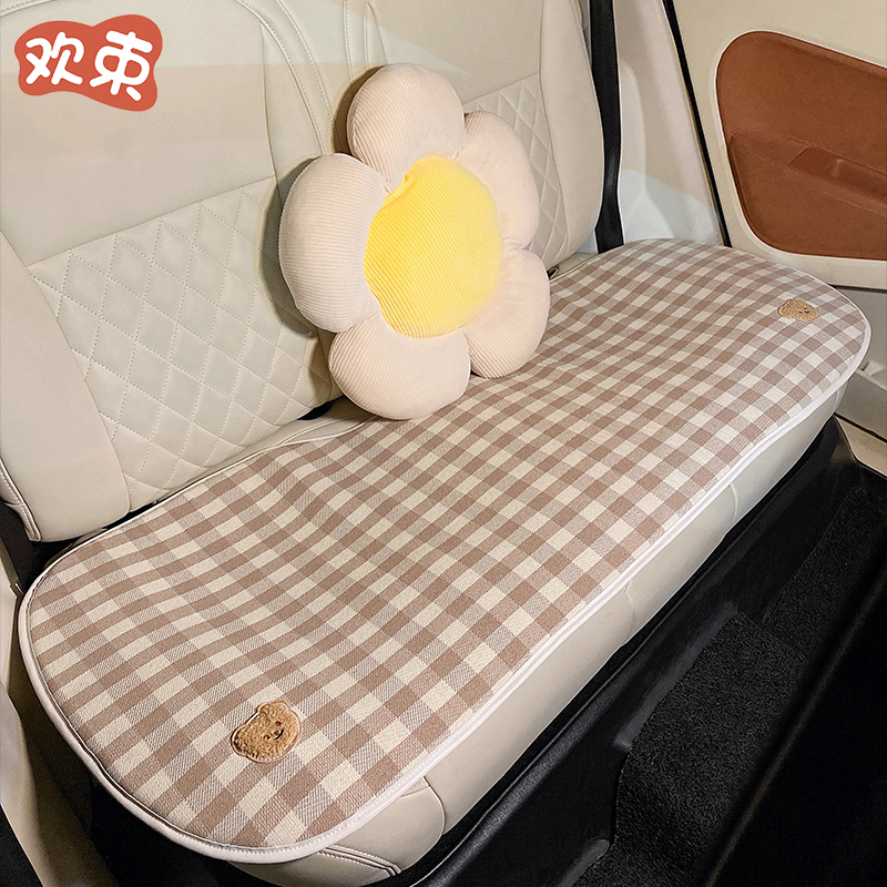 汽车坐垫四季 车内座椅垫单片 通用棉麻车载亚麻座垫可爱女士女神款