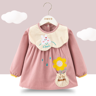 宝宝罩衣女秋冬婴儿秋季 围兜儿童护衣女童防水反穿衣公主吃饭围裙