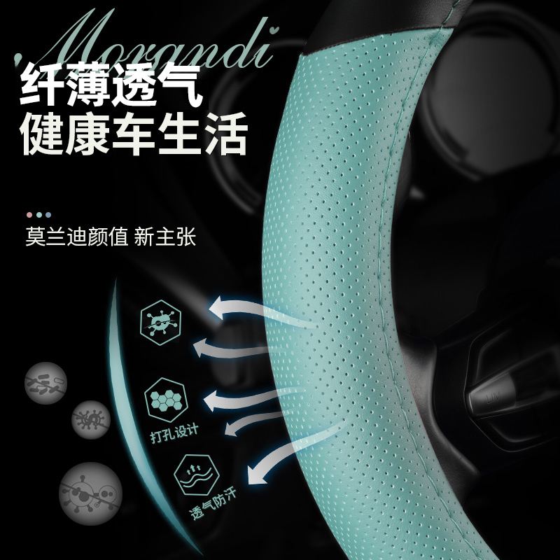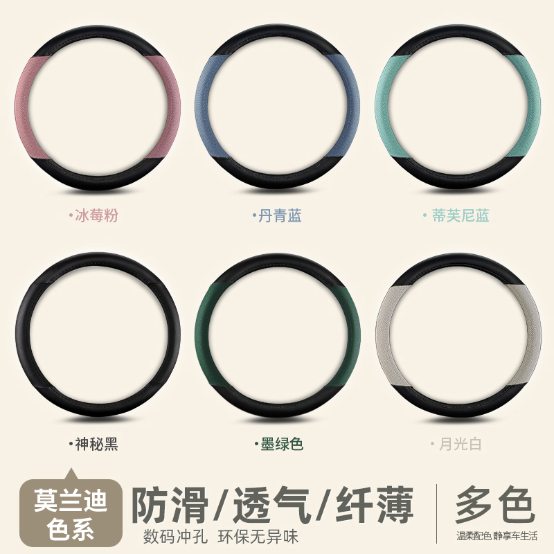 汽车方向盘套防滑吸汗超薄方向盘D型把套透气四季 通用真皮薄款