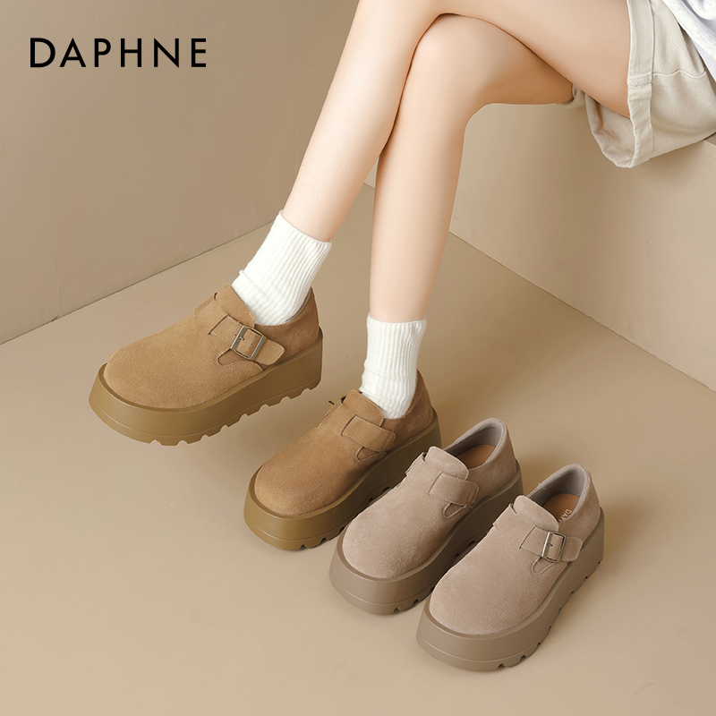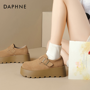 一脚蹬单鞋 达芙妮厚底勃肯鞋 全包真皮增高松糕女鞋 新款 女2025秋季