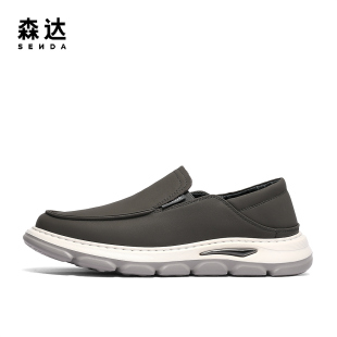 1VT01AM5 一脚蹬厚底懒人豆豆皮鞋 森达休闲皮鞋 男2025春新商场同款