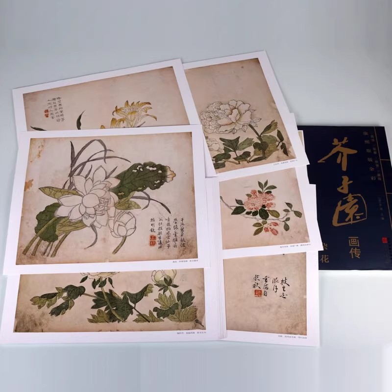 6开大本单张图册 高清临摹装 饰赏析 芥子园画谱康熙原版 河北美术出版 清李渔编册页盒装 花卉国画花草画册 社 全彩芥子园画传杂花谱