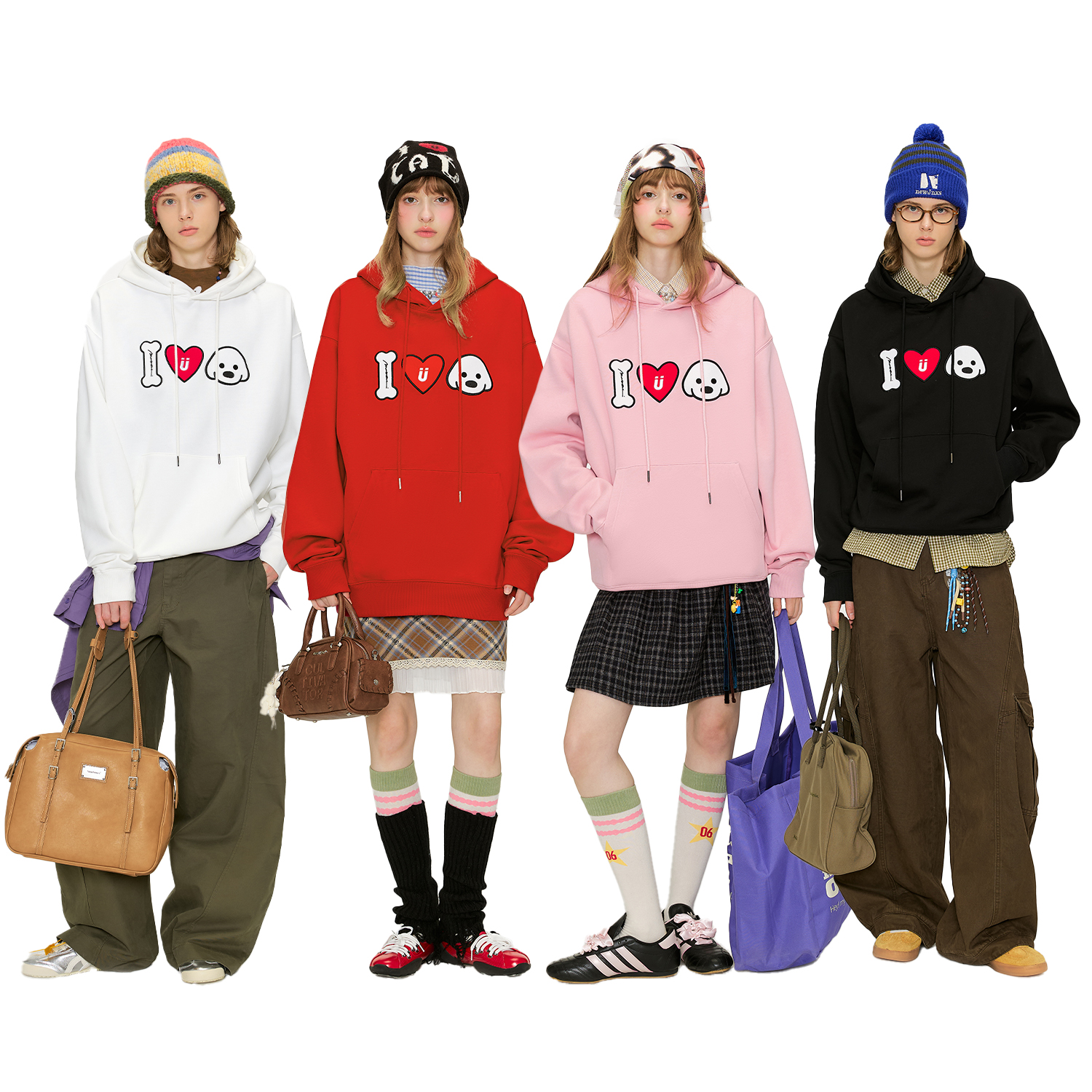 GUUKA&matsui联名黑色爱心小狗潮牌卫衣男冬季 宽松 加绒落肩连帽衫