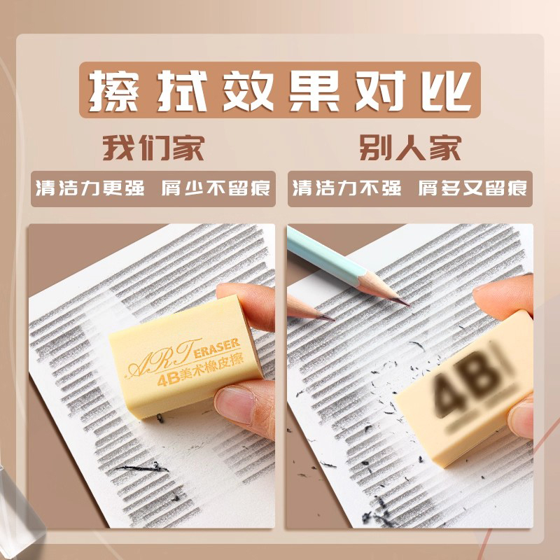 新款 橡皮擦小学生专用素描无屑像笔擦超干净不留痕擦得干净儿童安全无幼儿园美术4B像皮擦铅笔擦字成条橡皮毒