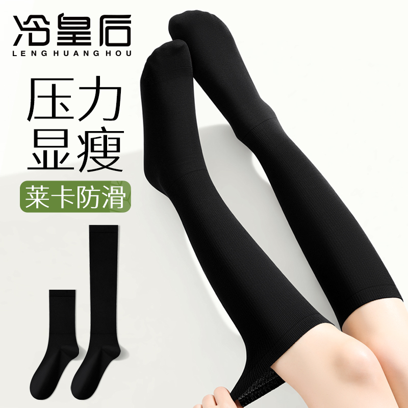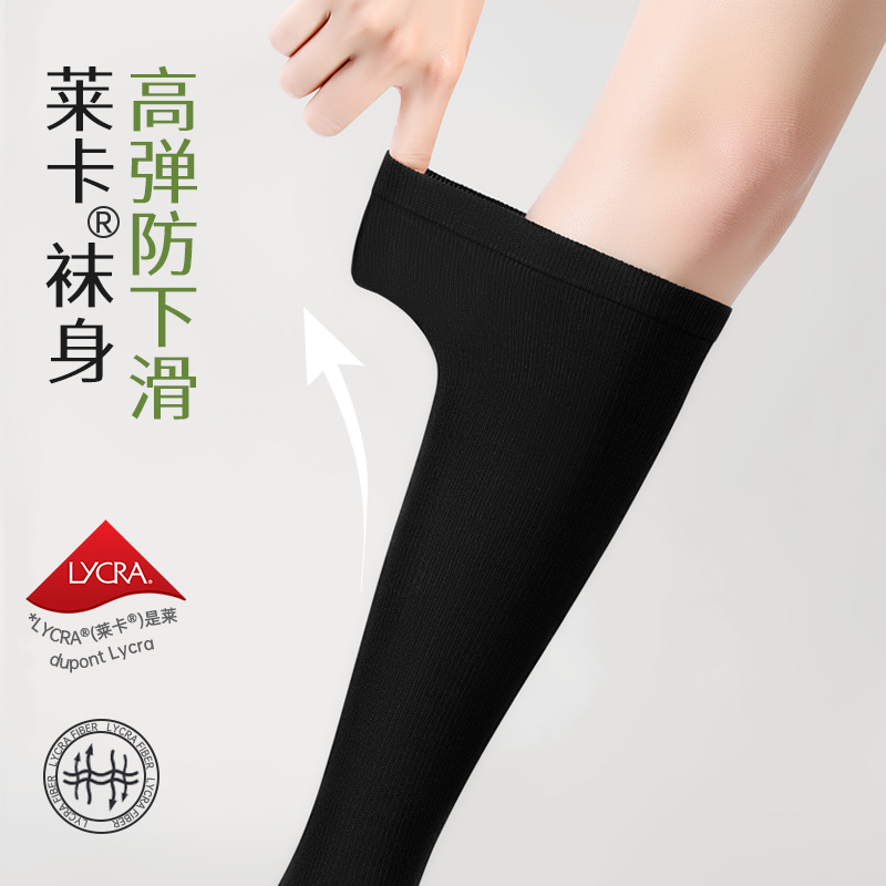 压力小腿袜女春秋强压黑色过膝长筒袜配小皮鞋 jk羊毛中高筒瘦腿袜