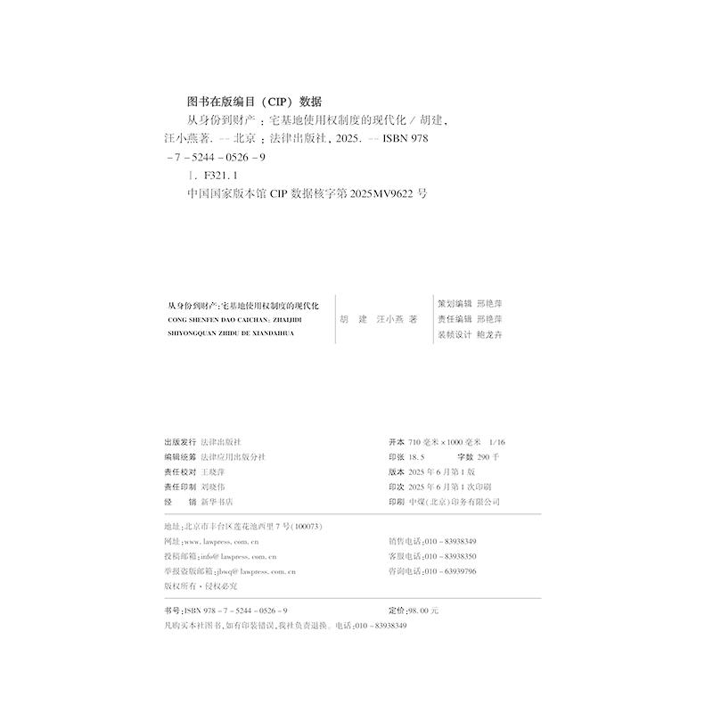 宅基地使用权制度 现代化 胡建 正版 法律出版 从身份到财产 汪小燕 社9787524405269 2025新书