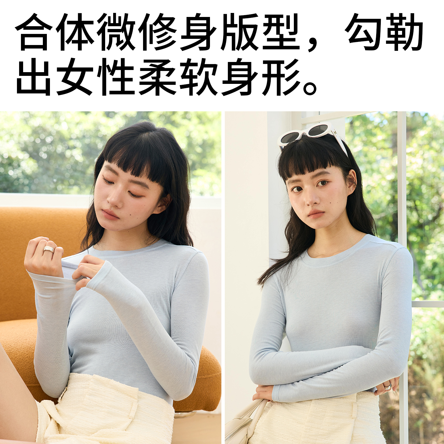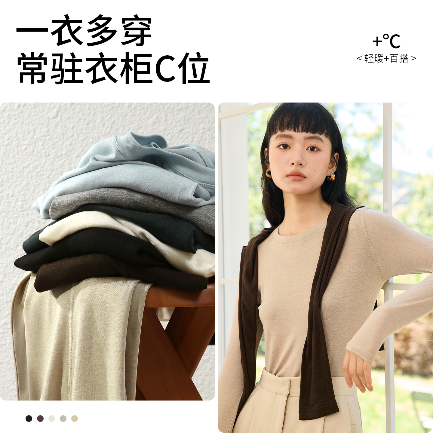 羊毛修身 桃奈斯圆领打底衫 t恤内搭2025新款 长袖 显瘦上衣 女秋冬季