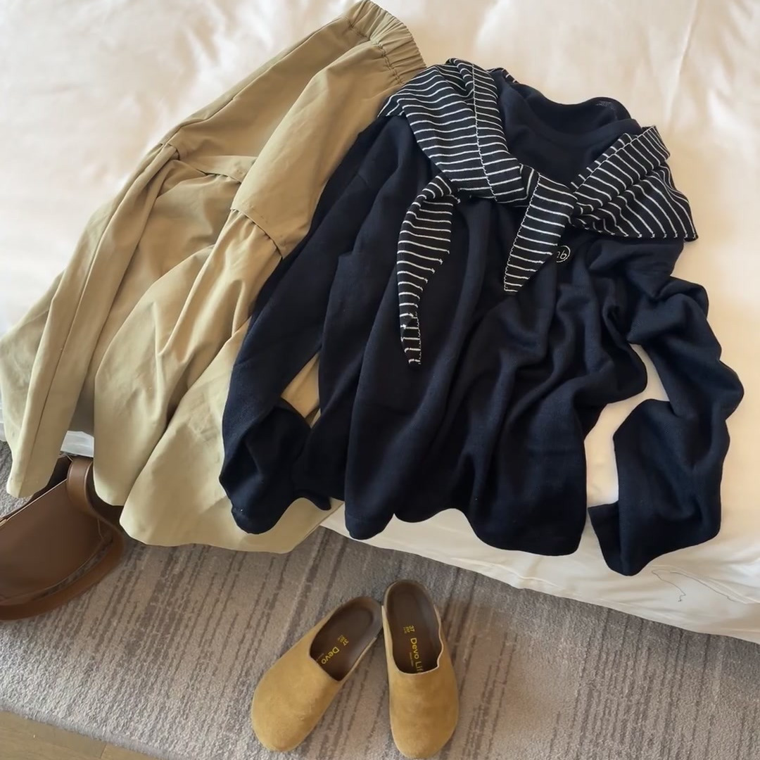 女2025秋冬新款 配披肩半身裙一整套装 穿搭 简约百搭条纹针织衫 韩版
