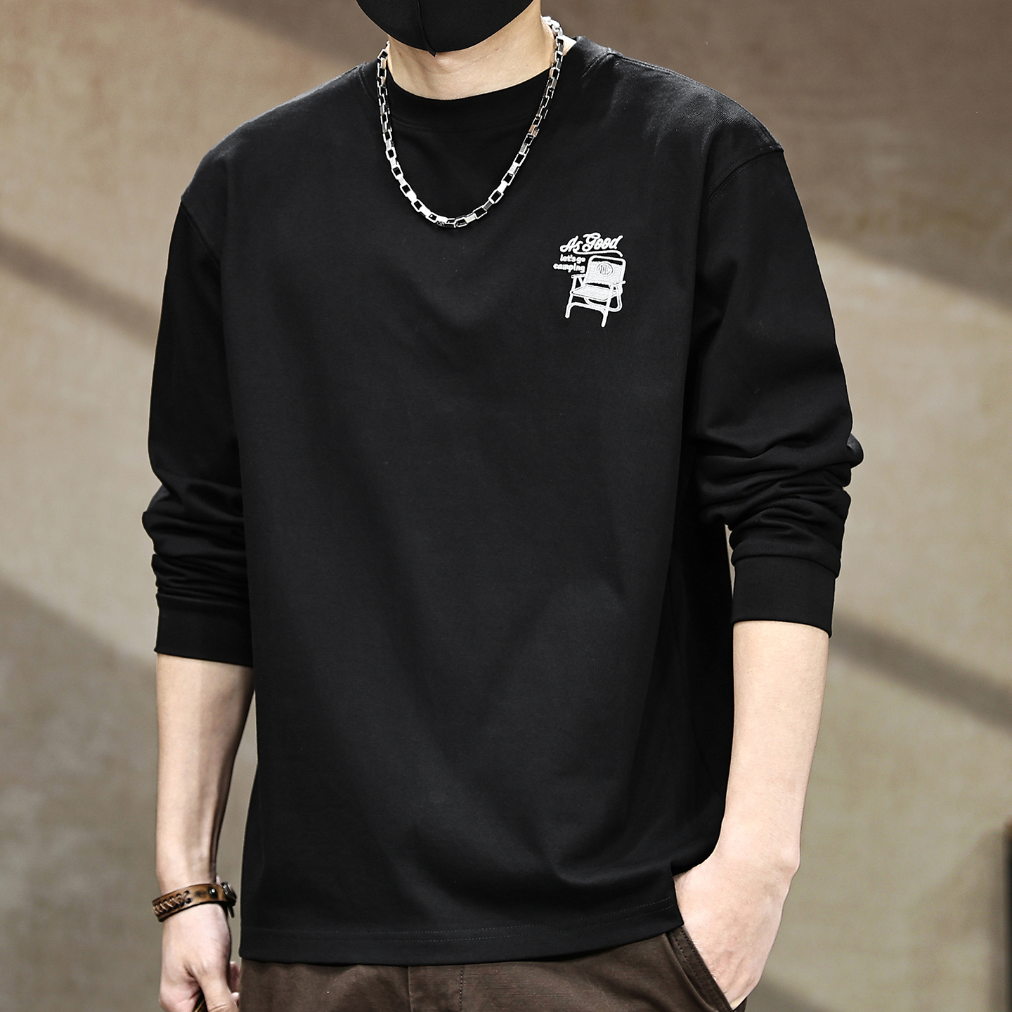 秋季 刺绣打底衫 内搭长袖 休闲宽松男士 体恤上衣 t恤男薄款 2025新款