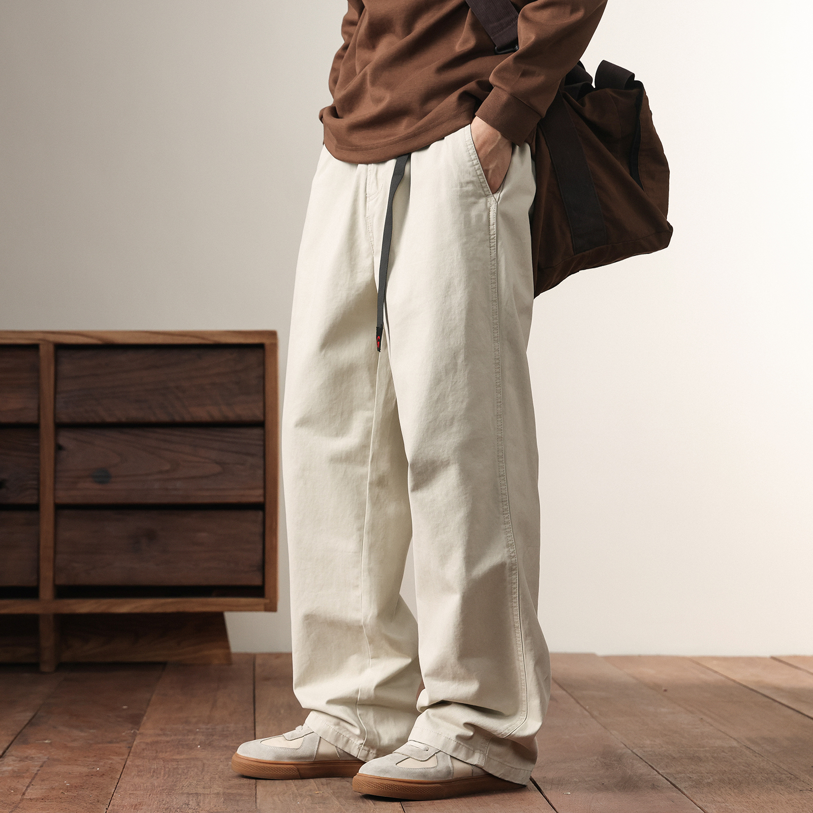 裤 日系慵懒风纯棉米色休闲裤 锥形工装 2025新款 男宽松百搭直筒长裤