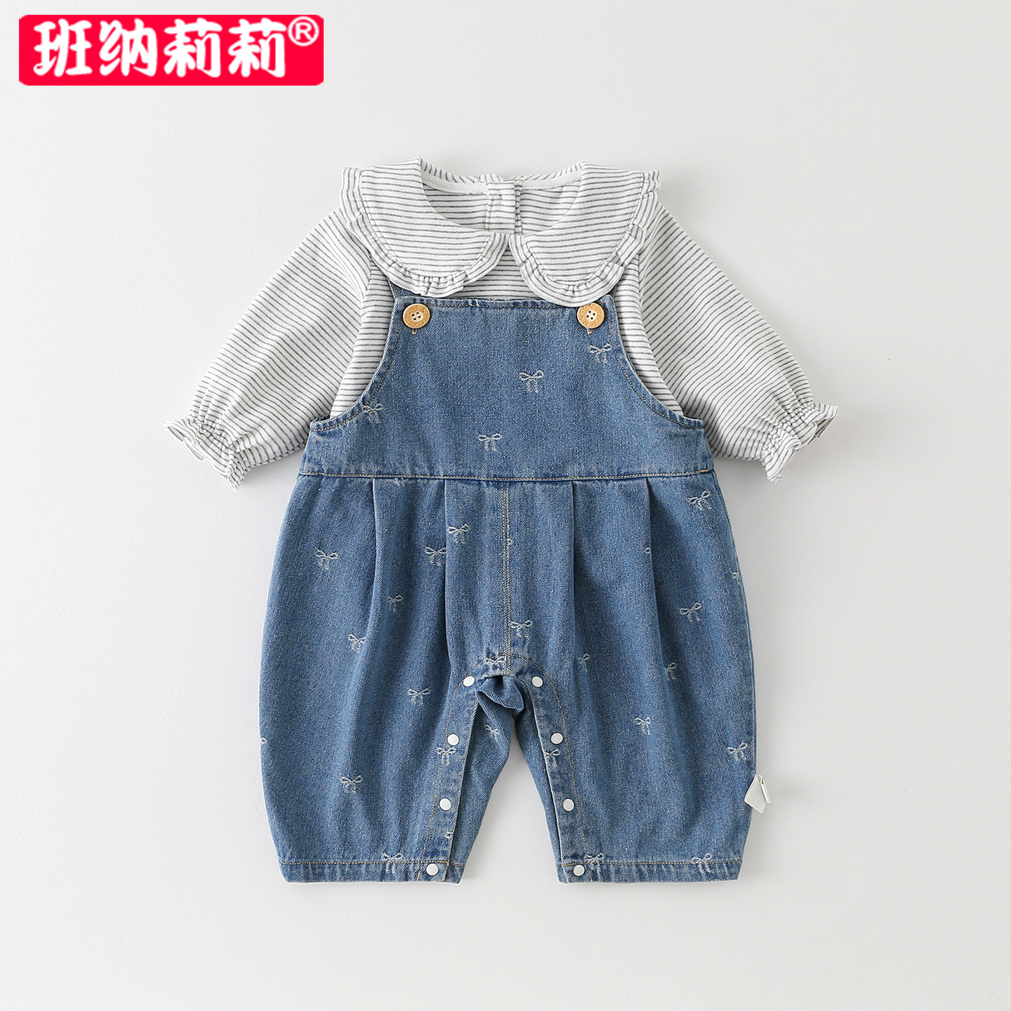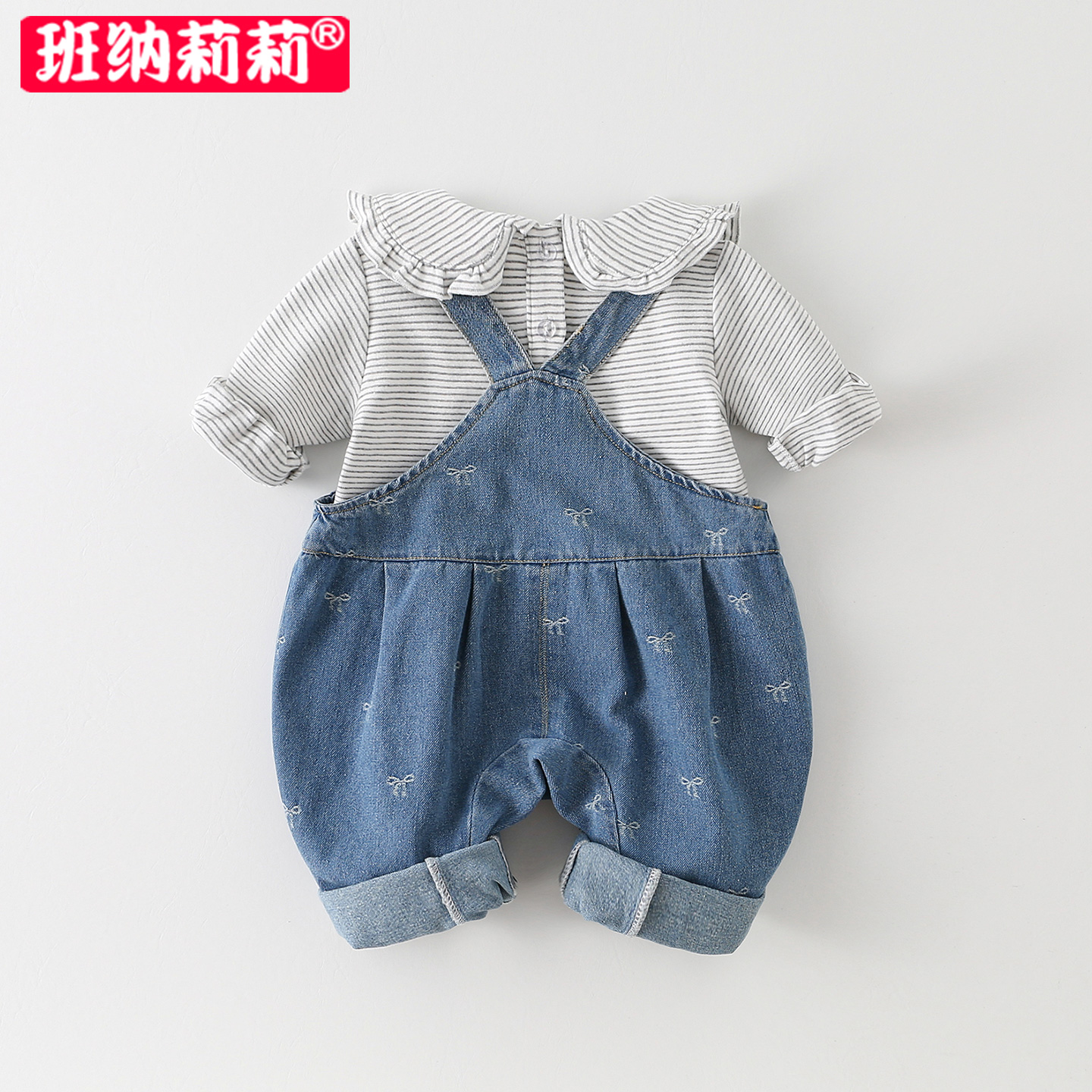 套装 秋季 秋装 洋气宝宝衬衫 幼儿衣服两件套 2025款 女童软牛仔背带裤