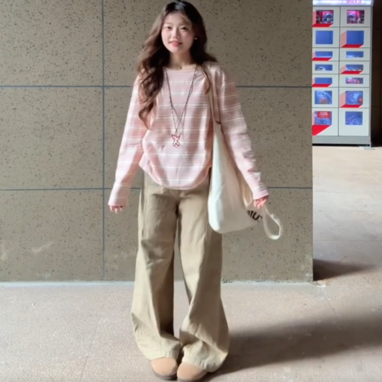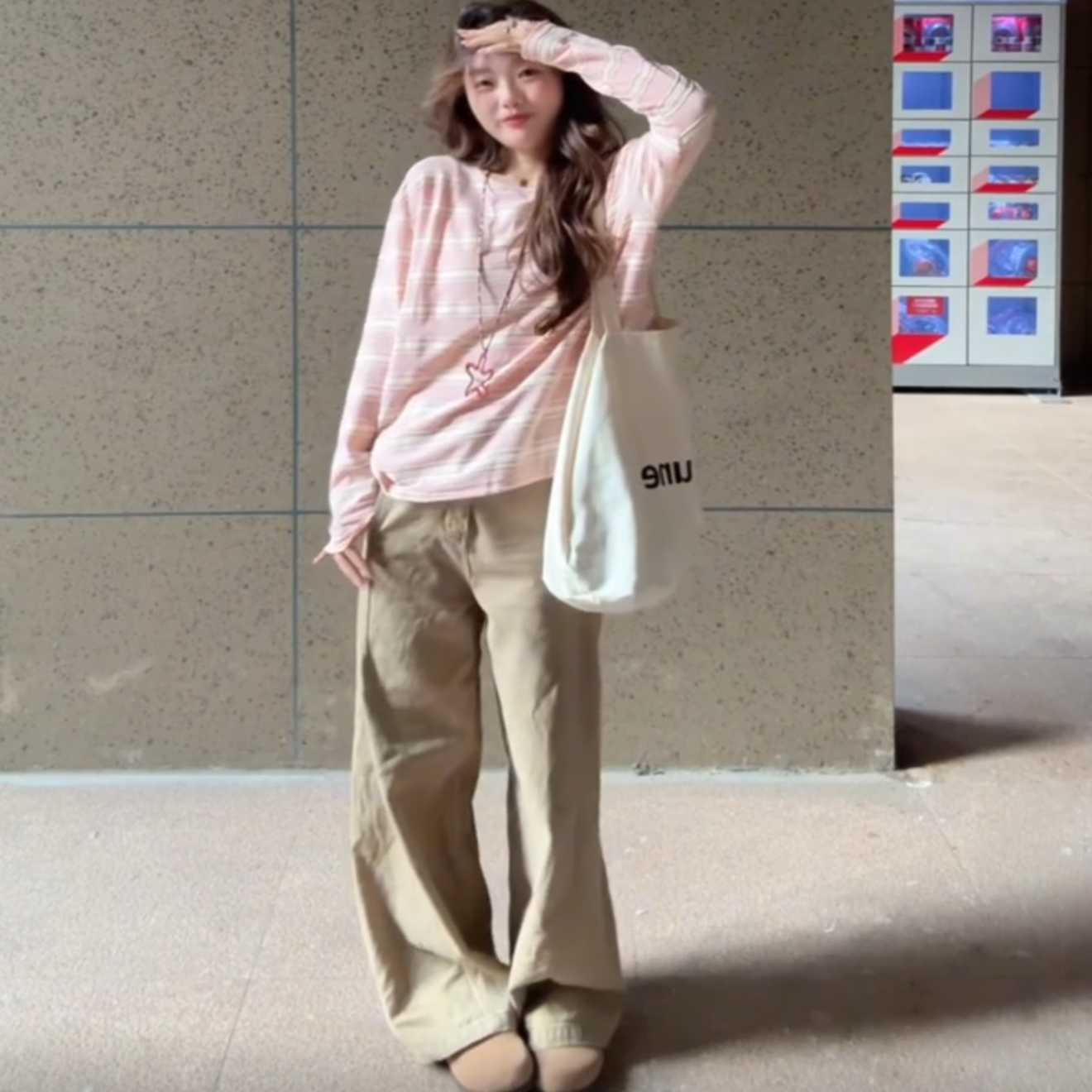 chic韩系粉色条纹长袖 高级感独特漂亮单穿上衣 t恤女2025春秋新款