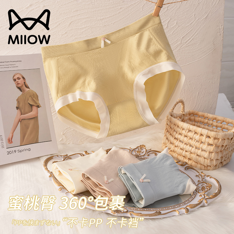 女士纯棉中腰女生内裤 不夹臀抗菌内裤 三角裤 新款 短裤 全棉时代内裤
