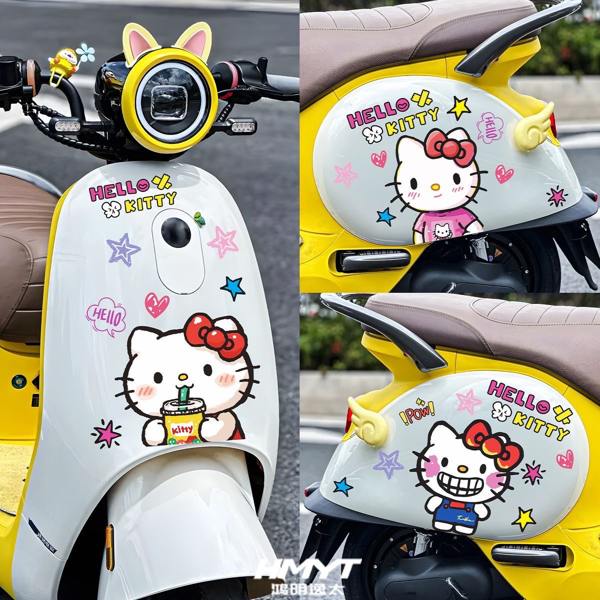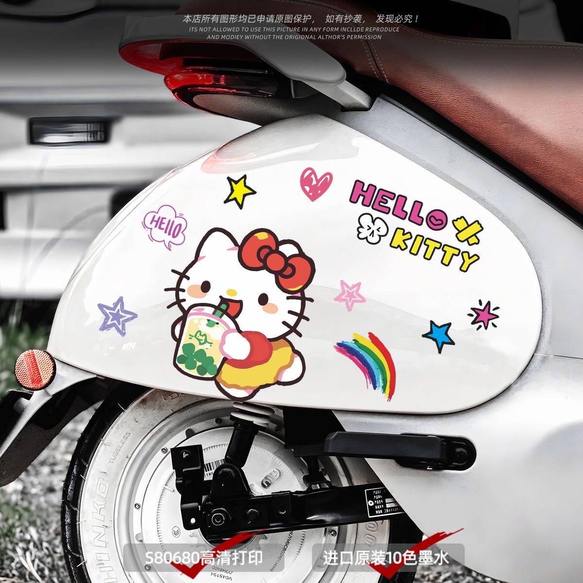 头盔摩托车电动车装 饰可爱车身贴纸卡通凯蒂防水遮挡贴画划痕抖音