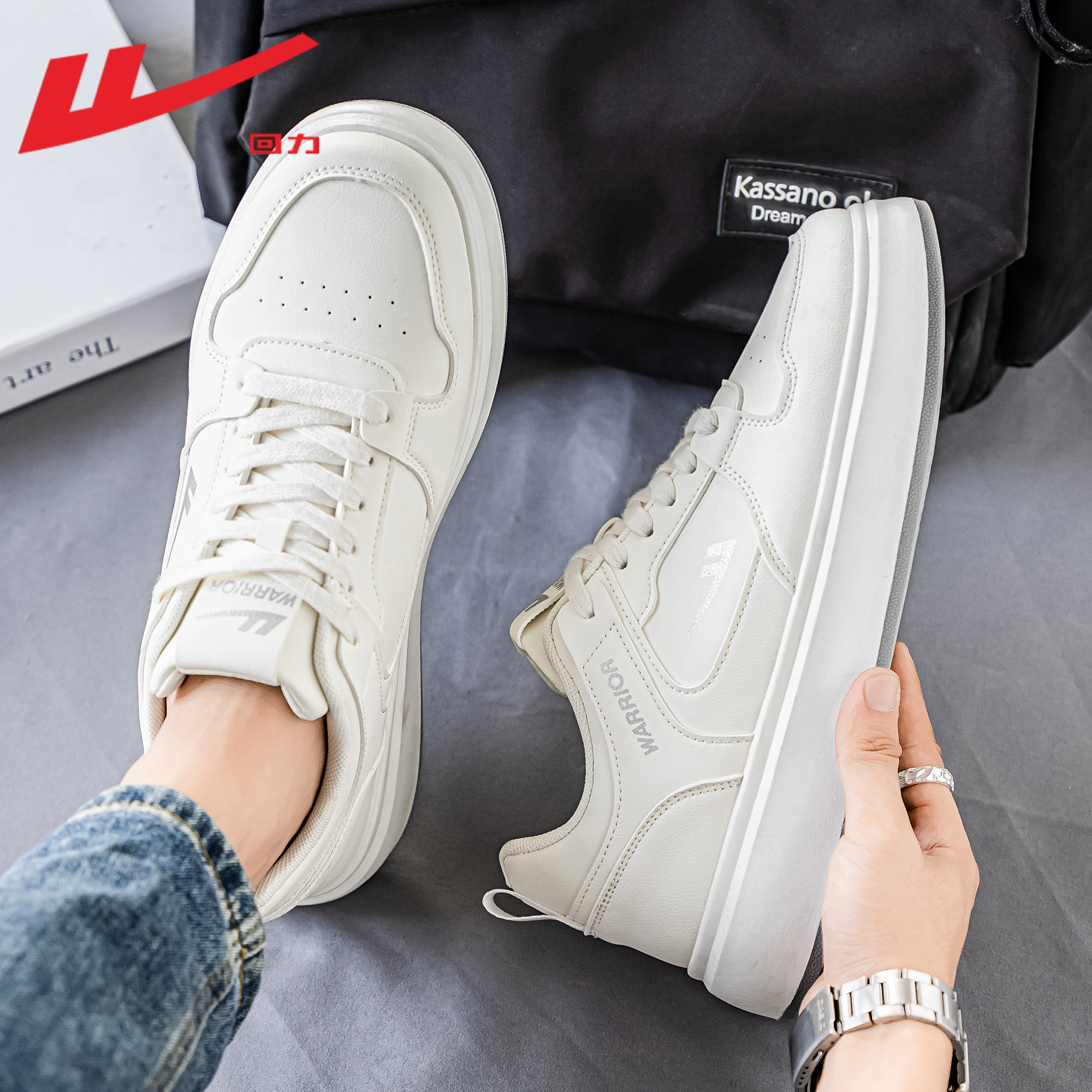 秋季 2025新款 男士 休闲皮面厚底运动白色板鞋 回力男鞋 子男款 小白鞋