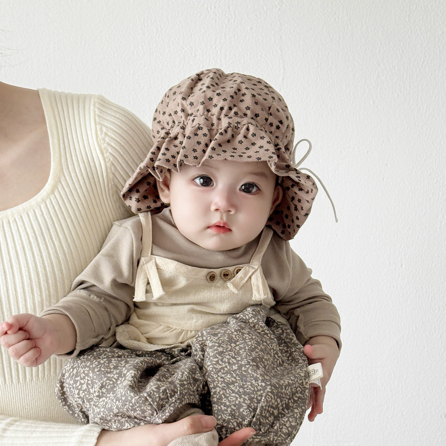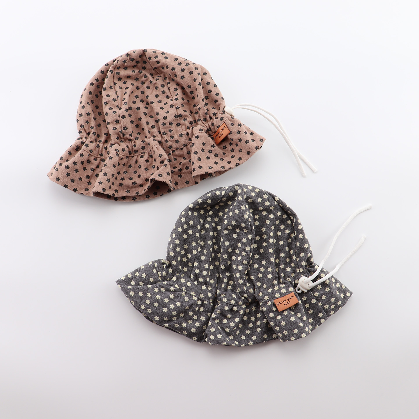 婴儿帽子春秋季 韩系碎花抽绳女宝宝公主风盆帽秋冬女童防风渔夫帽