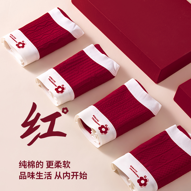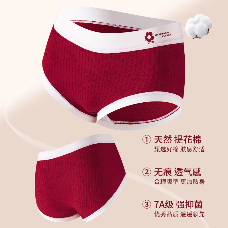 三角短裤 草本初色纯棉本命年安克拉红内裤 女7A抑菌档马年2026新款