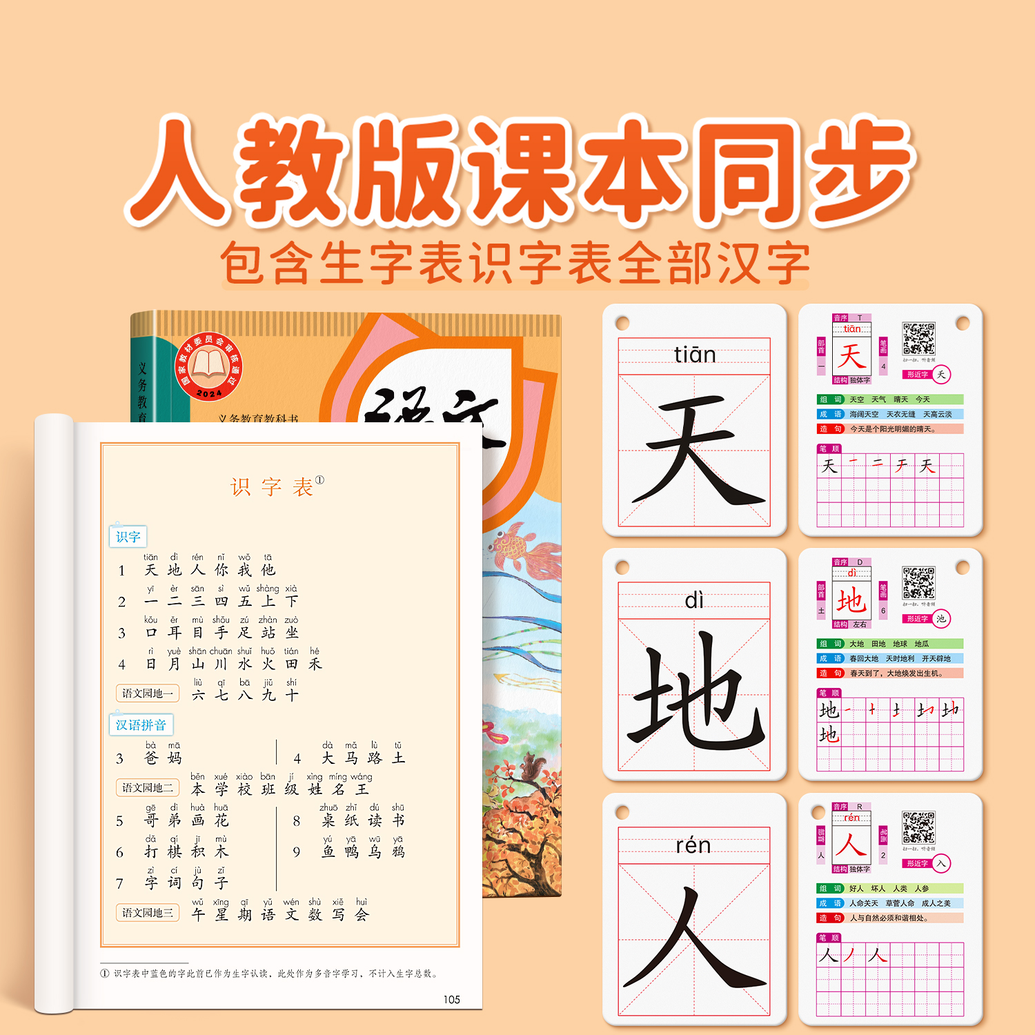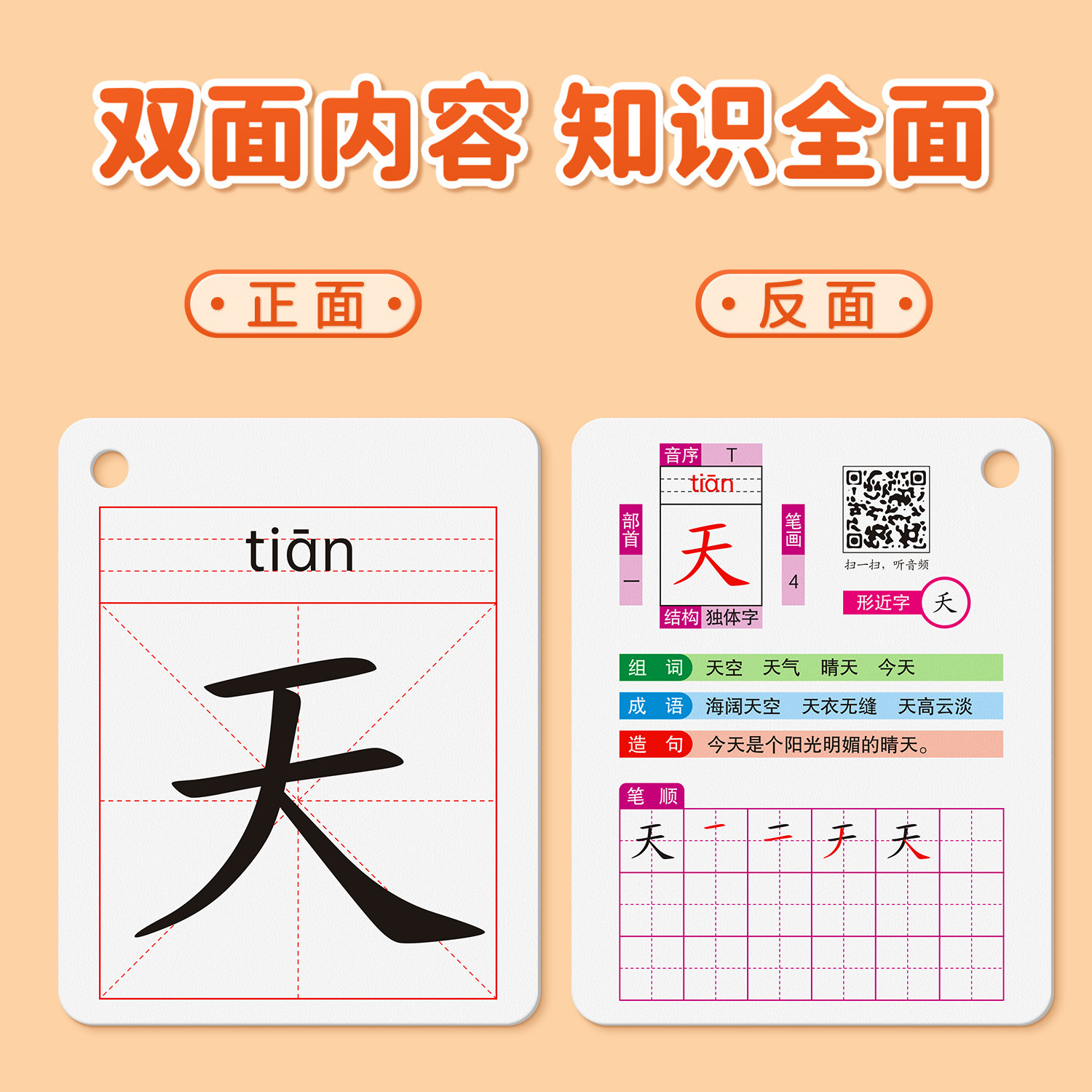 6岁幼小衔接启蒙认字卡汉字拼音识字游戏语文无图卡每日一练 语文课本同步配套儿童3 2025新版 一年级上册下册生字识字卡片人教版
