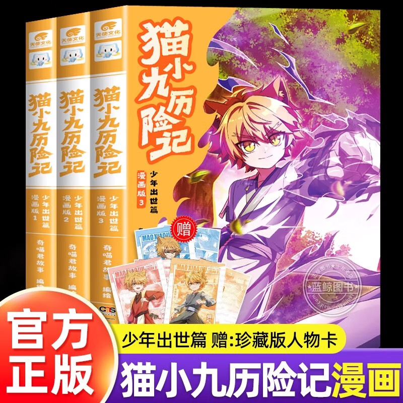 猫小九历险记漫画1 初露锋芒篇适合儿童看 3册 2少年出世 魔法奇迹世界里奇幻冒险故事书 猫小九历险记小说1 正版
