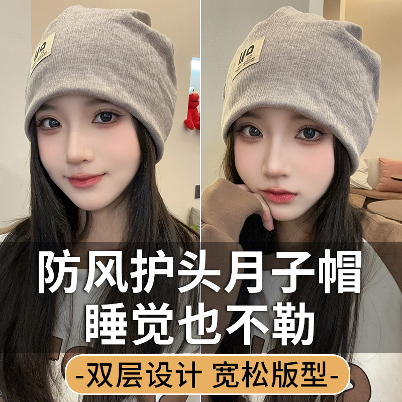 孕妇堆堆帽女月子帽夏薄款 秋冬纯棉产妇帽防风帽子睡觉可戴大头围