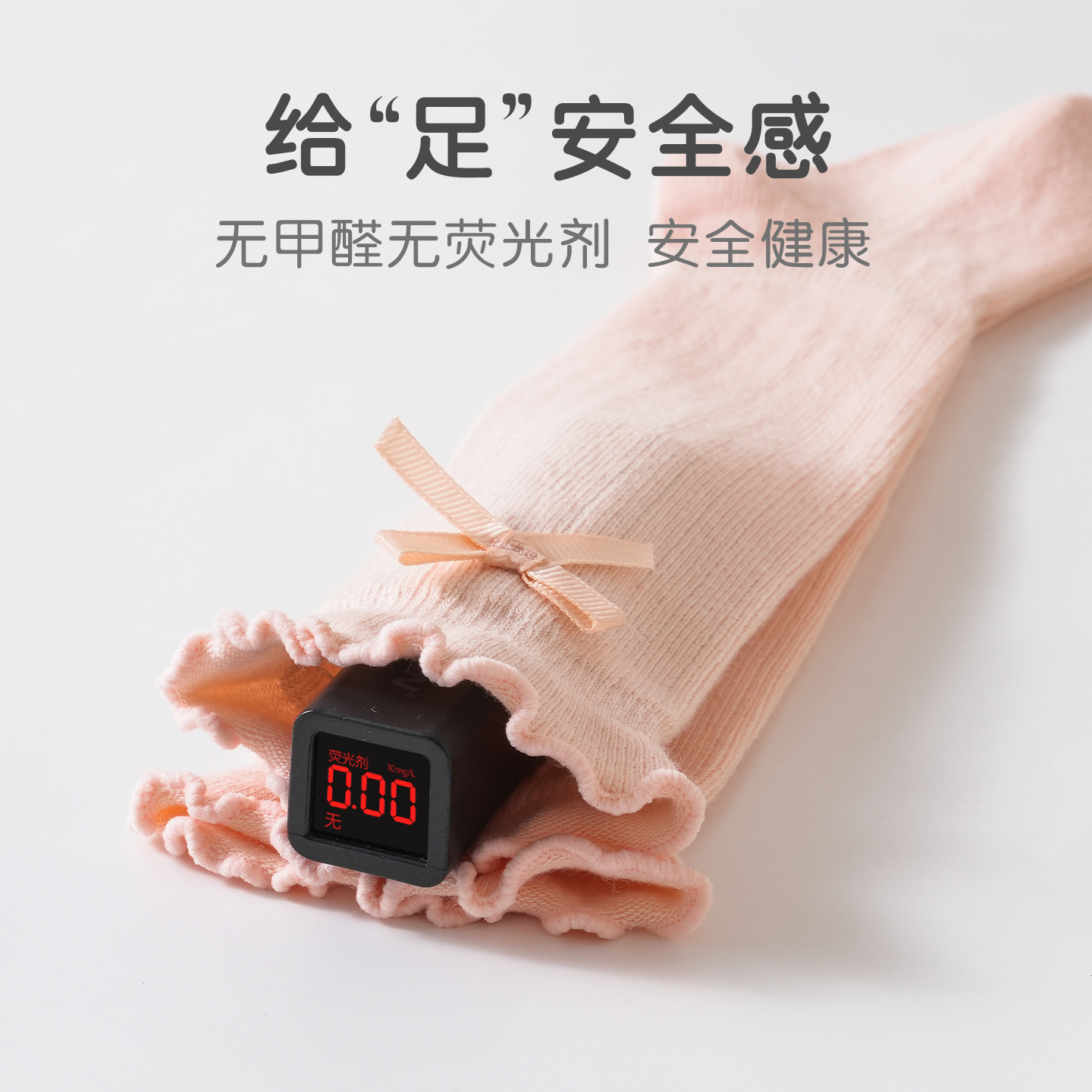 婴儿长筒袜春秋纯a类棉袜新款 花边蝴蝶结过膝宝宝袜子女孩童秋冬