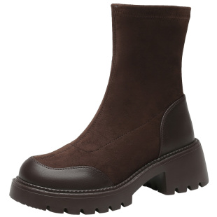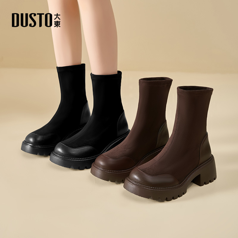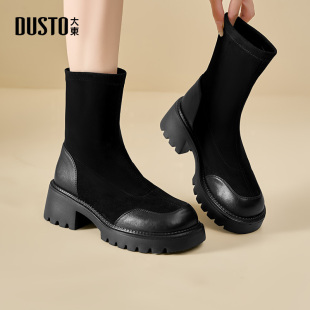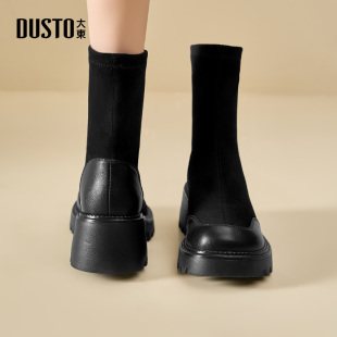 大东官方厚底短靴女2025新款 春秋增高靴子袜靴增高女靴弹力瘦瘦靴