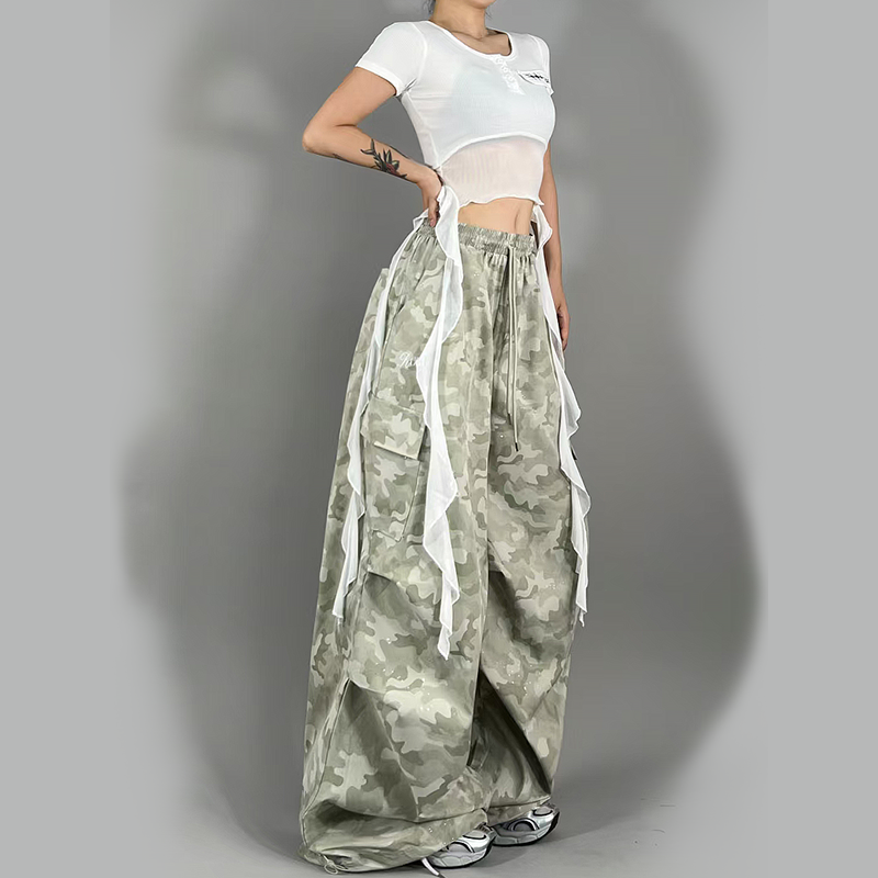 女爵士舞 裤 ROKBBK K布韩街舞潮牌2025百搭街头褶皱迷彩工装