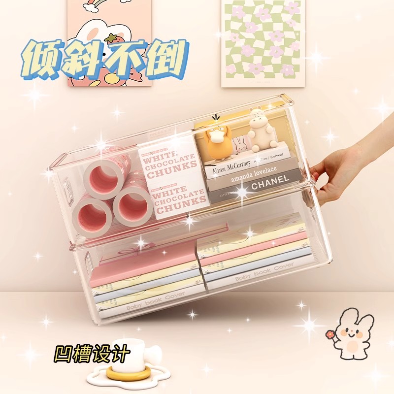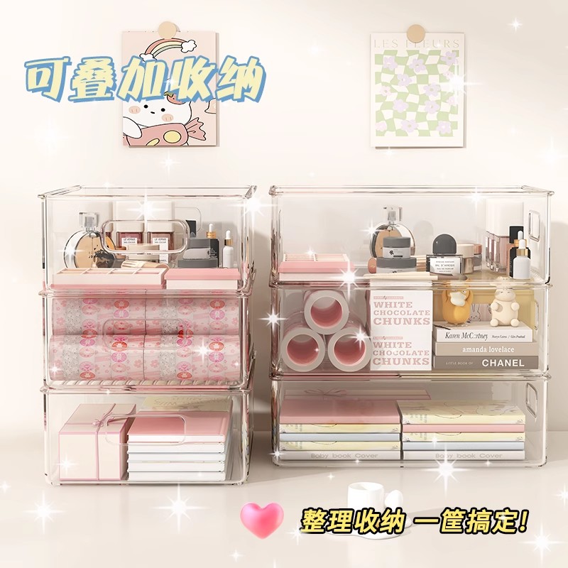 桌面收纳盒亚克力化妆品零食透明筐护肤品面膜宿舍整理杂物置物架