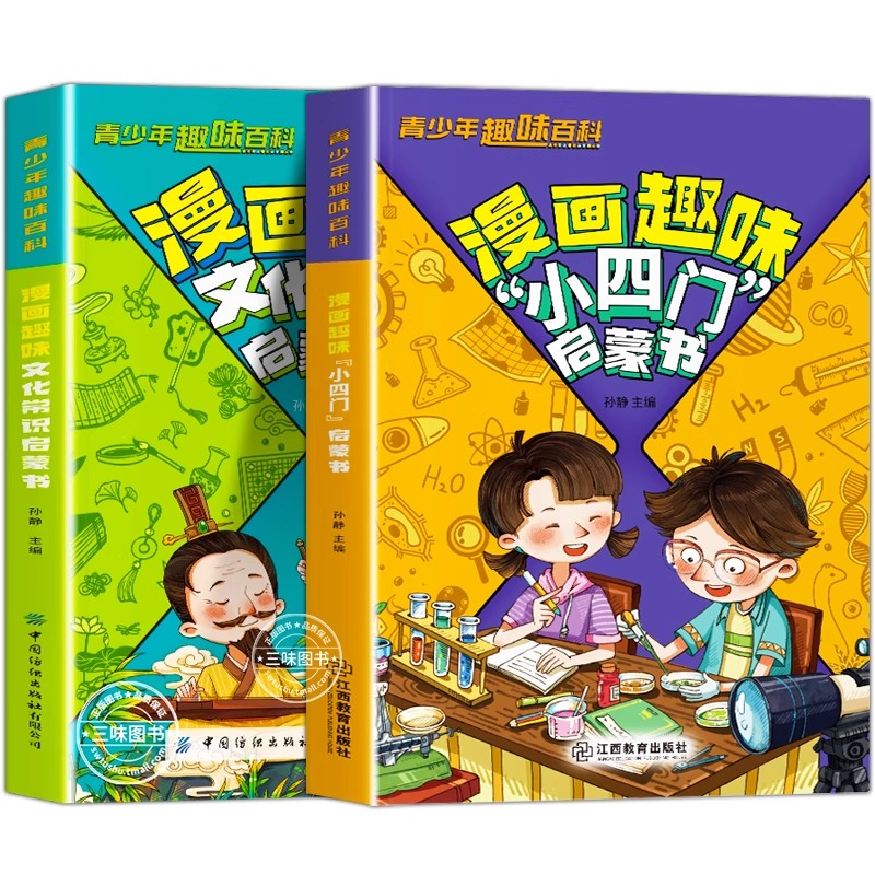 物理化学儿童趣味百科全书漫画版 小四门启蒙书正版 全套小学生科普书籍漫画趣味数学物理化学生物地理 漫画趣味文化常识 抖音同款