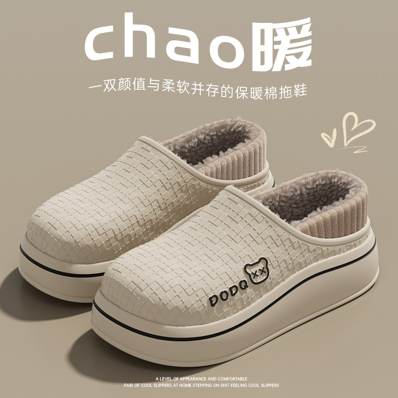 男多规格 户外室内全包跟加绒棉拖鞋 踩屎感棉鞋 女士秋冬季