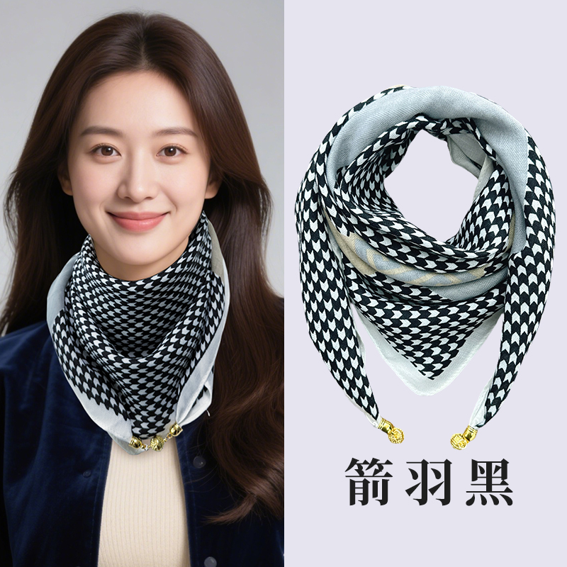 新款 小方巾女丝巾领巾秋冬护颈吊坠围巾 保暖方巾磁吸扣三角巾薄款