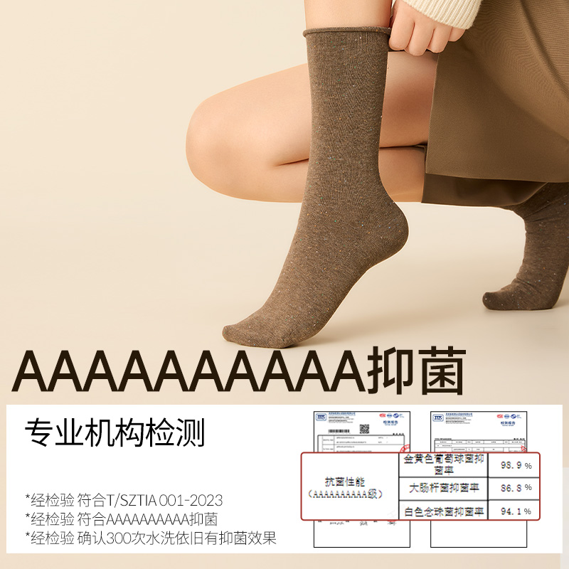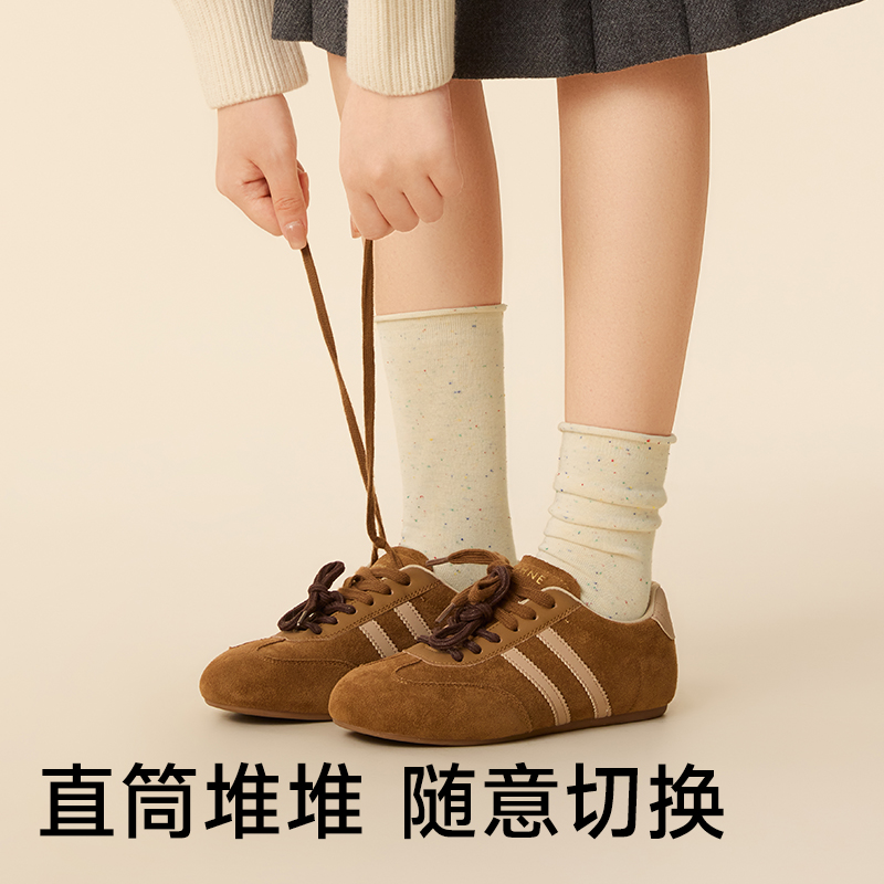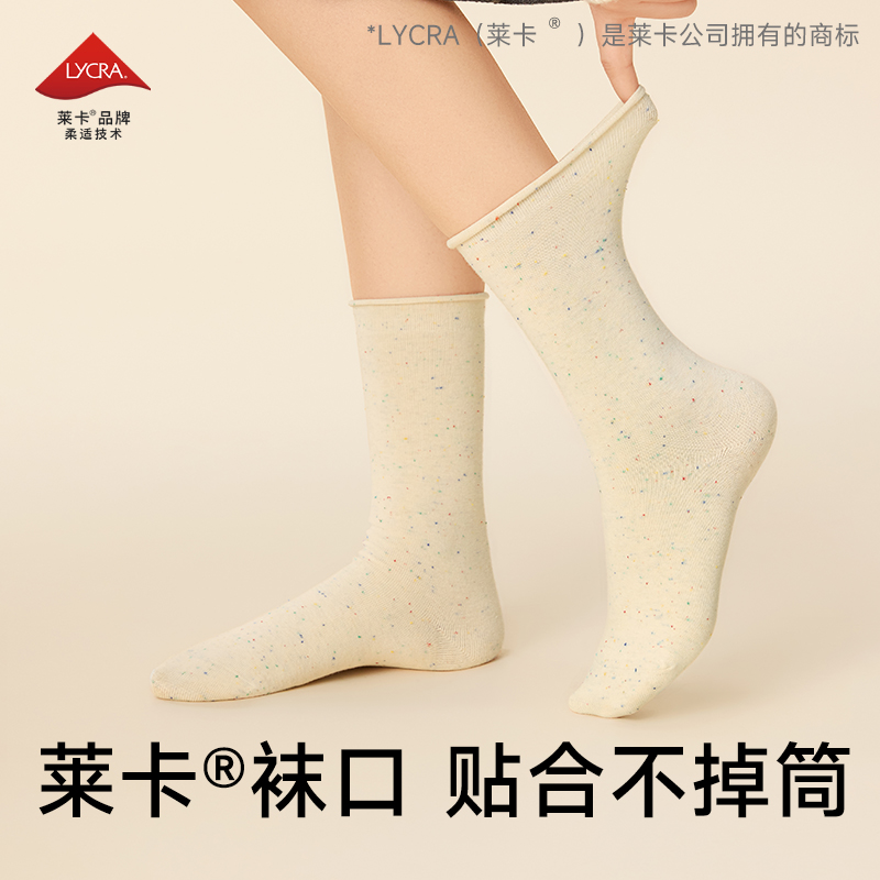 配小皮鞋 春秋季 无骨中筒袜 爆款 堆堆袜女点子纱纯棉吸汗2025新款