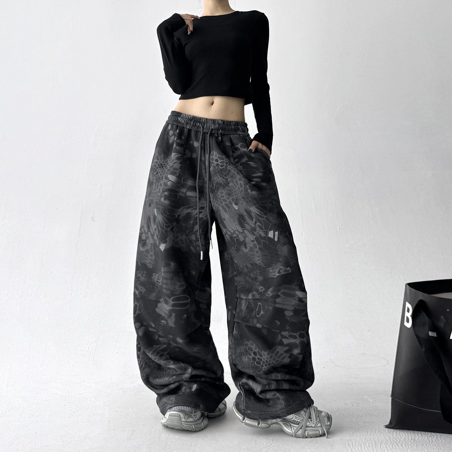高街复古迷彩裤 潮牌百搭休闲裤 女2025秋装 痞帅宽松阔腿裤 新款 美式