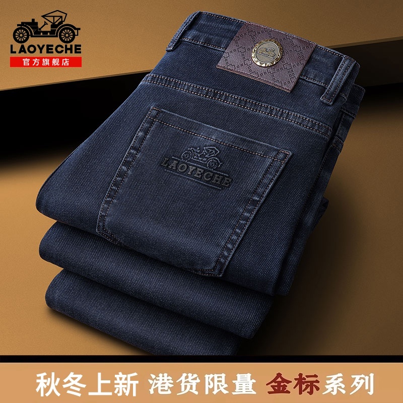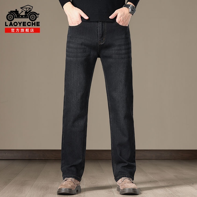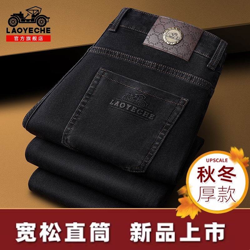 加绒弹力休闲长裤 老爷车牛仔裤 新款 宽松直筒2025年秋冬季 子男 男士